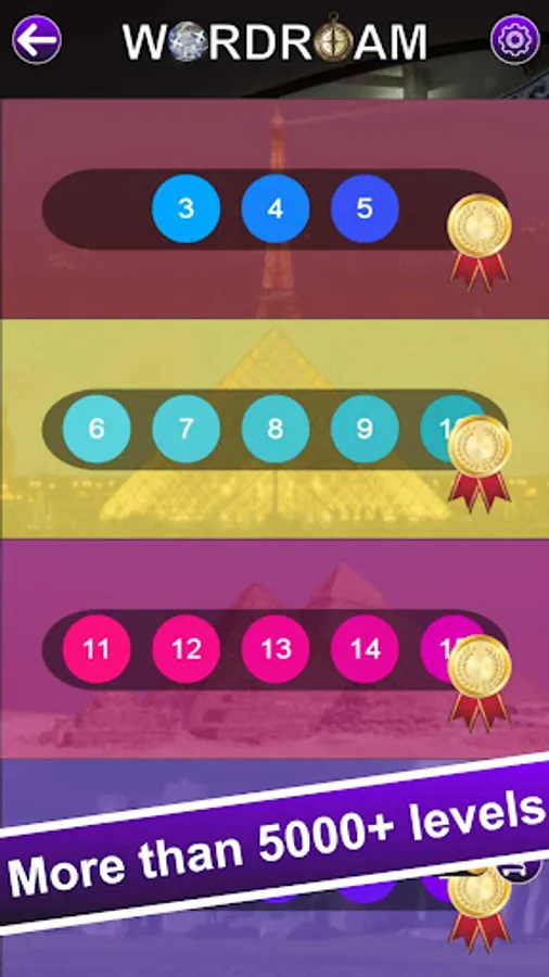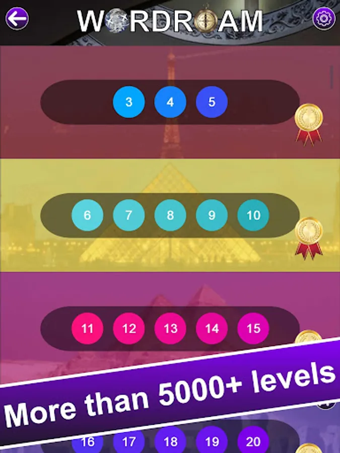 Word Roam - Words of Wonders will test your vocabulary as you discover the wonders filled with challenging levels. Begin your journey with the first wonder and climb your way up to reach the top. Each wonder and level will get progressively harder and will be unique, thanks to the game’s rich database. Connect the letters without lifting your finger, find the hidden words on the board!