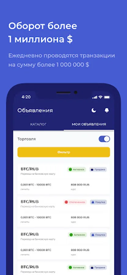 Bitzlato is a P2P platform for buying and selling cryptocurrencies. The Bitzlato mobile App is an extension of the famous Bitzlato Telegram bot (BTC banker).