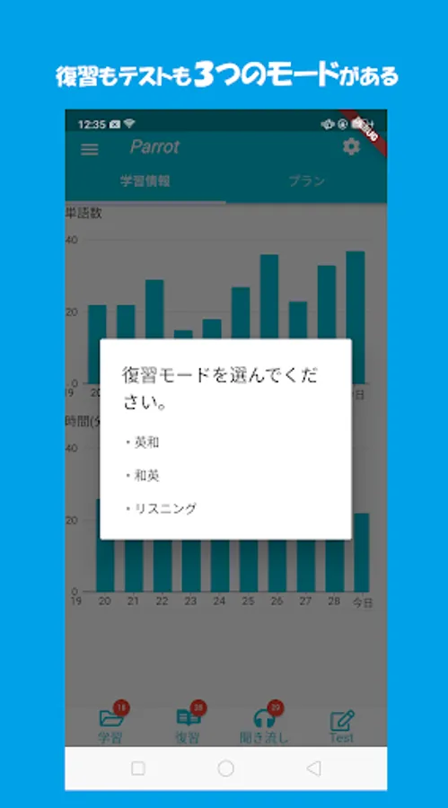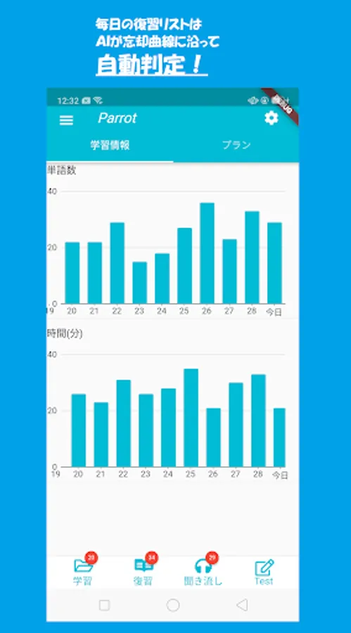"English word master PARROT" incorporates an efficient memorization method along the forgetting curve, and AI calculates an appropriate review timing. You can surely learn the English words you were not good at in a short time.