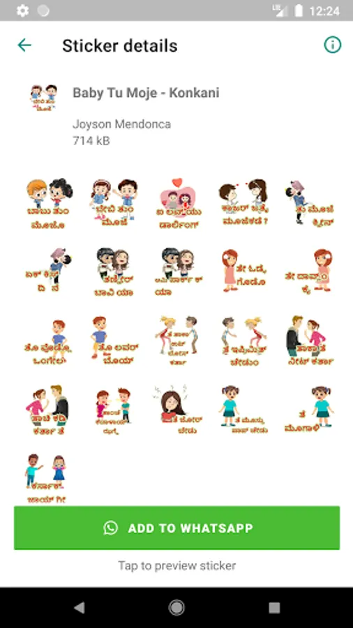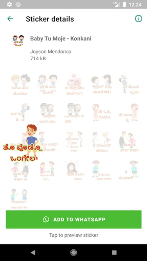 This App contains Funny, Comedy, Costal Celebrities Konkani Language (Kannada) Font WhatsApp stickers. Users can add these stickers directly to WhatsApp stickers tray. Download the App and start fun with your friends though stickers.