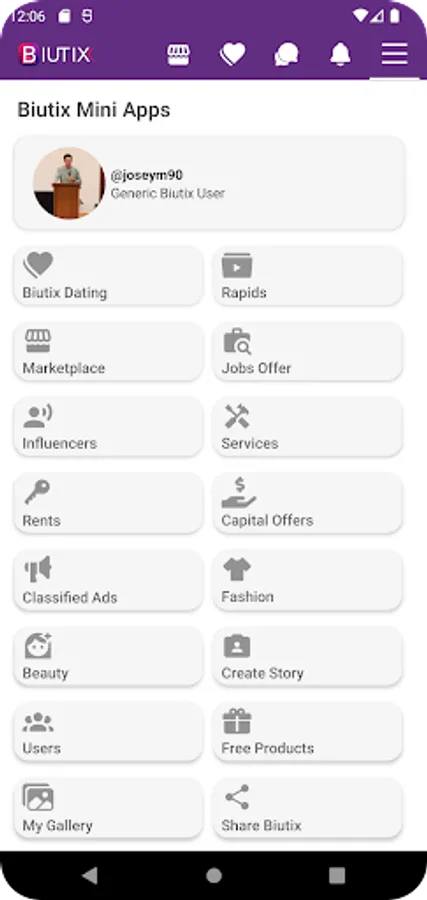 Biutix is an all-in-one social network that allows you to do many of your important activities without leaving Biutix. Biutix provides you with great services that range from Dating, Market, job and capital market, rental, fashion, classifieds ads, a special service for Influencers to super funny videos. Biutix combines the best of all social networks. Biutix is the place where all its members can be rewarded. Take advantage and download Biutix for free to your mobile now