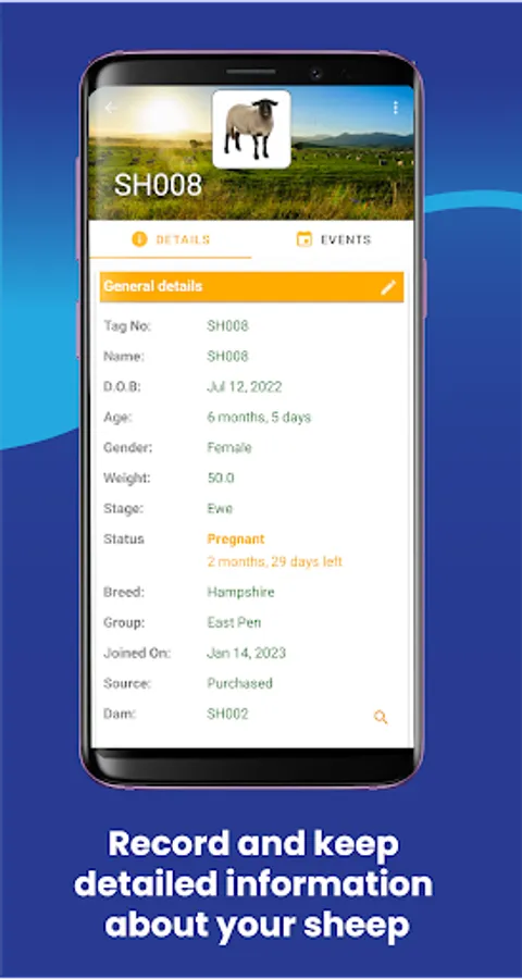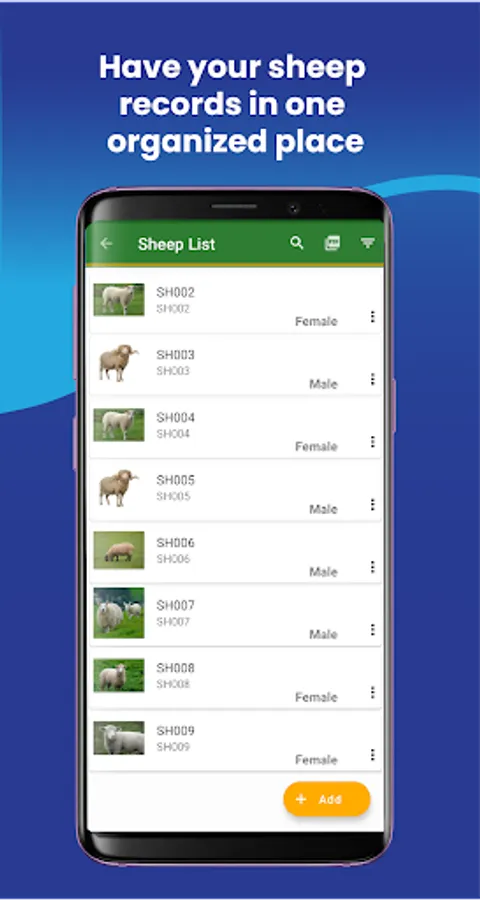Manage your sheep records: Keep track of all your sheep's details, including their age, gender, breed, group, dam, sire, and many more. You can also archive sheep records when sheep are sold, dead, etc.