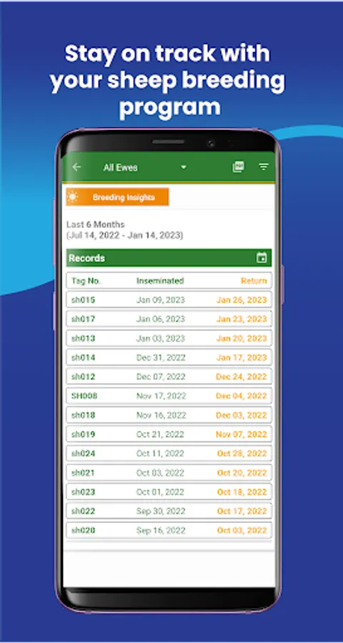 Breeding: Plan your sheep's breeding program with the breeding reports in the app.