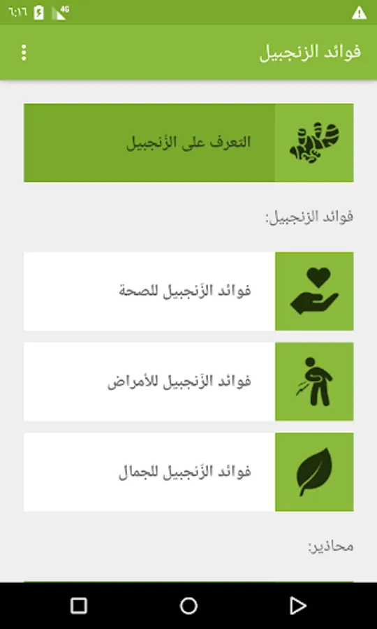 The benefits of ginger are a comprehensive application of everything related to ginger, whether green ginger or ginger oil or drink or crushed, the application includes a detailed definition of this unique plant, as well as the benefits of health and beauty and weight loss for women and men, Ginger damage in particular, whether for pregnant women, diabetics or other chronic diseases, also addresses many treatment methods for a large number of daily pains about drinking ginger.