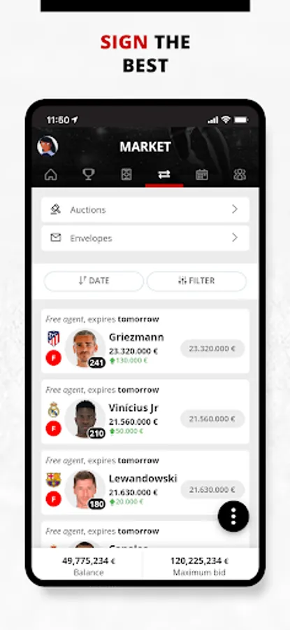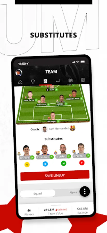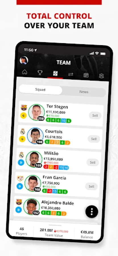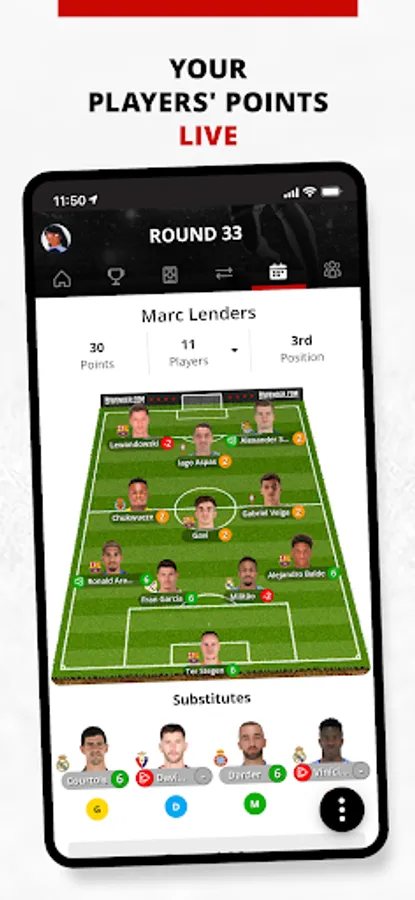 Show your football manager skills like in Comunio, Futmondo, Jornada perfecta, Fantasy Kings League, Football Fantasy, FútbolFantasy, Fantasy football manager or Comuniate.