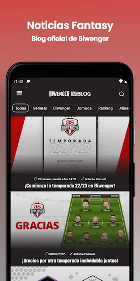 Enjoy the news of the fantasy football league thanks to the contents of the official blog of Biwenger AS. Receive instantly on your device the best picks for each day of the league, the players on a streak and the elevens of each soccer team so you can line up the right player.