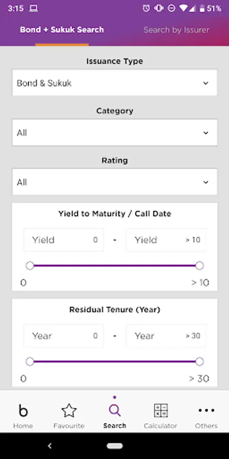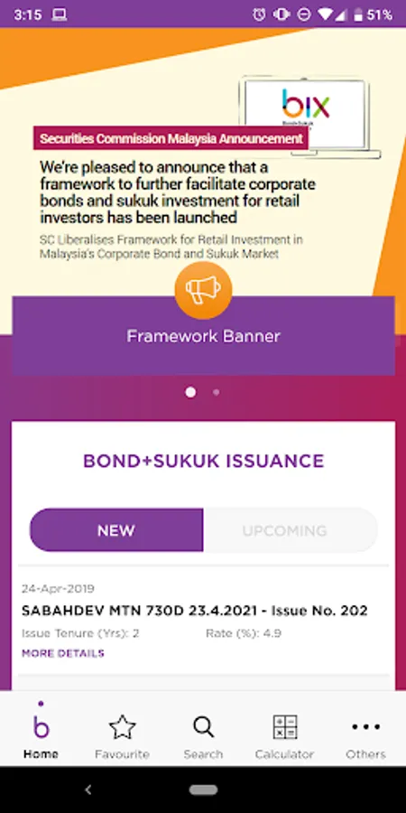 • Favourite – allows easy access to monitor and receive notification on your chosen favourite Malaysia bond and sukuk