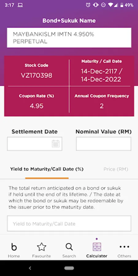 • Bond and Sukuk Calculator – calculate your investment price in Malaysia bond and sukuk as well as your total return to facilitate your investment decision making