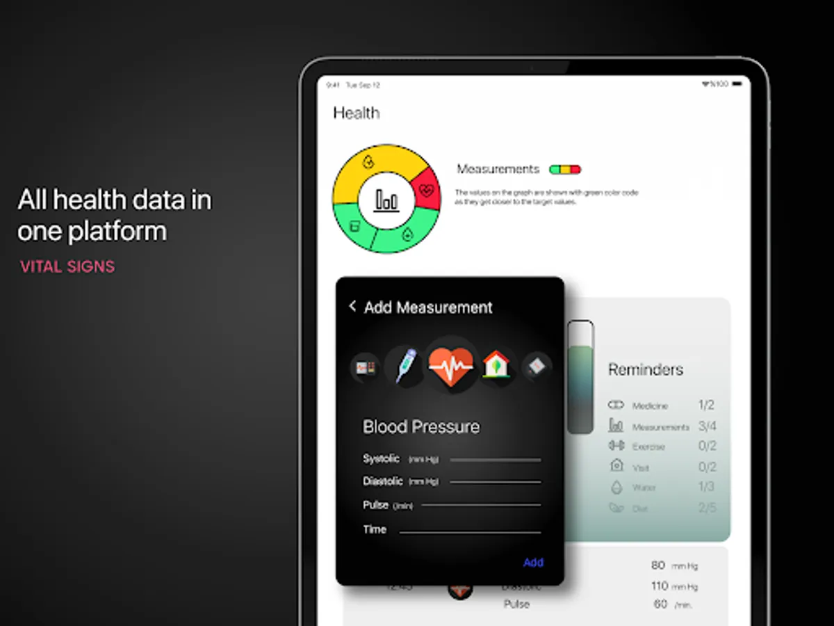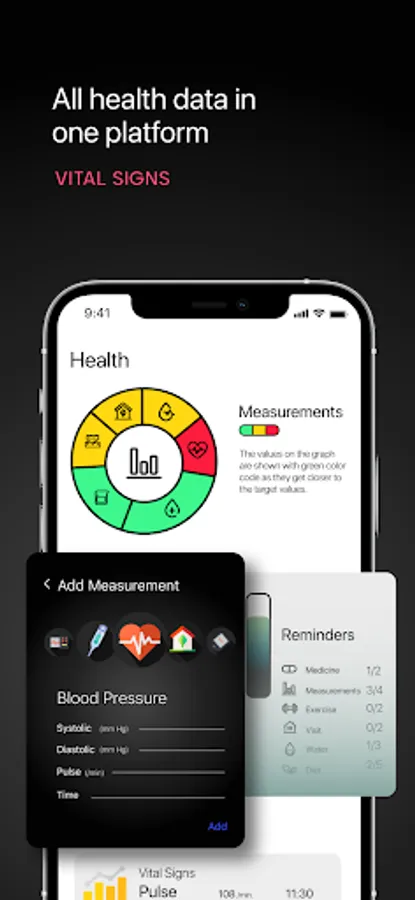 With our mobile and web applications, we ensure that your relatives and authorized healthcare team are aware of your health. We offer more practical, more effective and higher quality early diagnosis, observation and treatment processes, where your Health Diary, Health Files and Health Measurements data are securely archived.