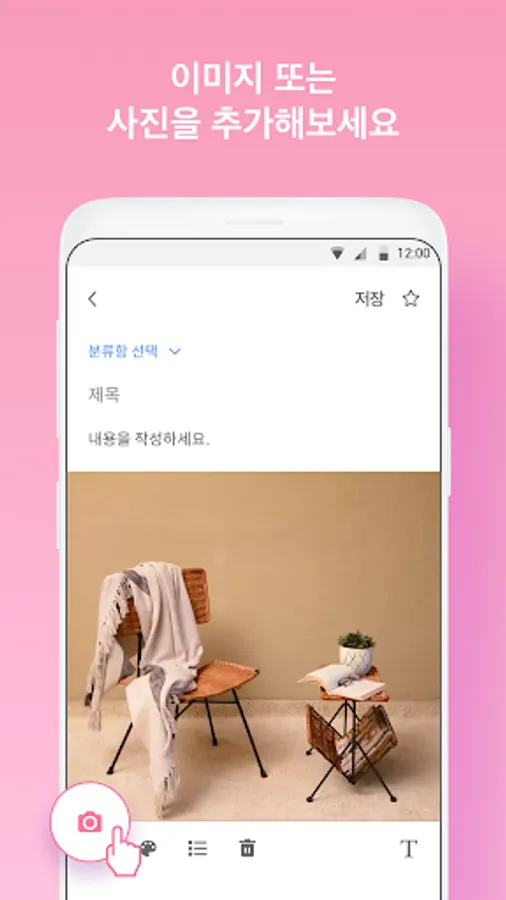 Tap the photo icon on the note you're writing, you can take a picture or take a picture directly.