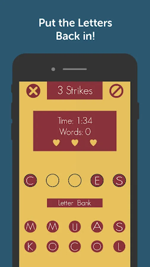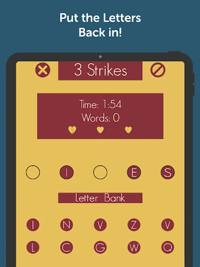 •Once you have filled out a word if wrong you will get your letters back.
