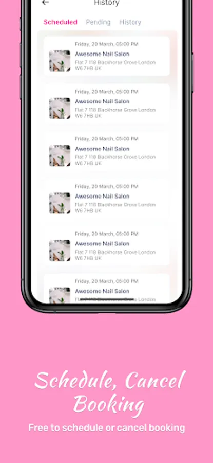 Our mission is to provide an application that integrates outstanding features to help you easily find a beauty address for your nails and your loved ones. To advance this mission, we offer the features and service options described below to you: