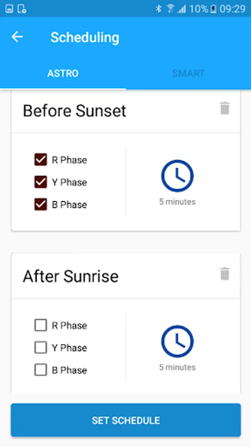 Group Timer variant is designed to ON and OFF the single/ three phase and can set Astro / Smart Schedule.