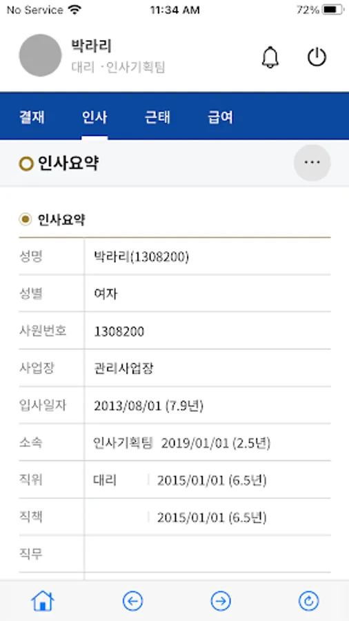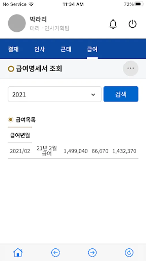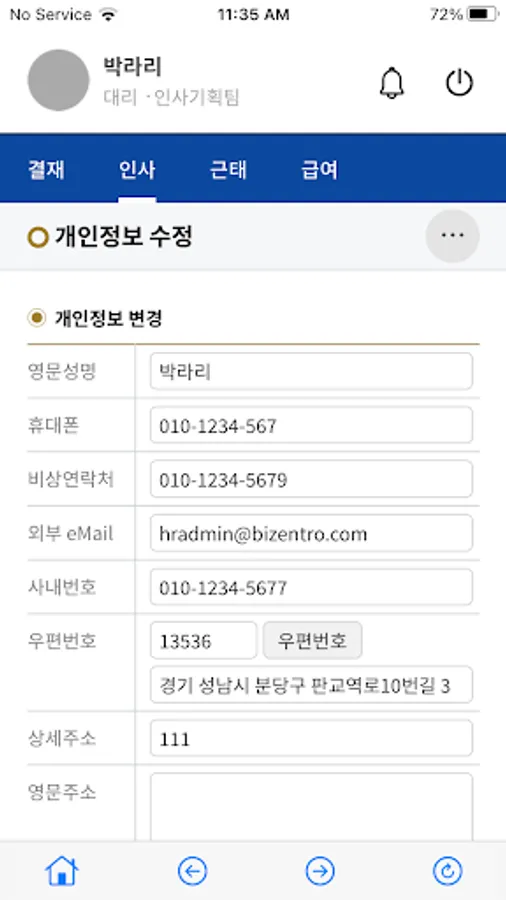 Based on web responsiveness, it provides various functions so that employees can easily and conveniently access personal information such as inquiry and change of personal information, preparation of various application forms, payment processing, attendance and departure records and work management, and salary performance.