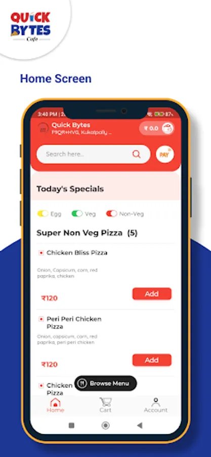 Quick bytes is offering you a wide range of pizzas, burgers, fries, beverages and shakes with freshly brewed and baked varieties of veg and nonveg items. We also offer ice-creams, fruit shakes and more....