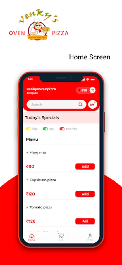 Venky's Oven Pizza s located in Hyderabad with a flavorful varieties of pizza's, burgers and many more with many variants as veg, non veg, and egg download the app and enjoy the delightful mouthwatering food.