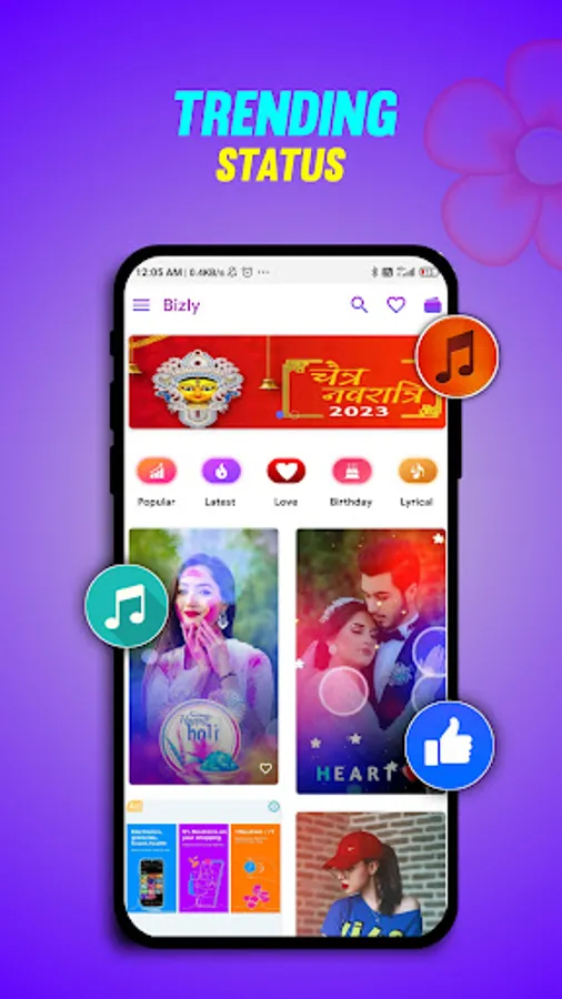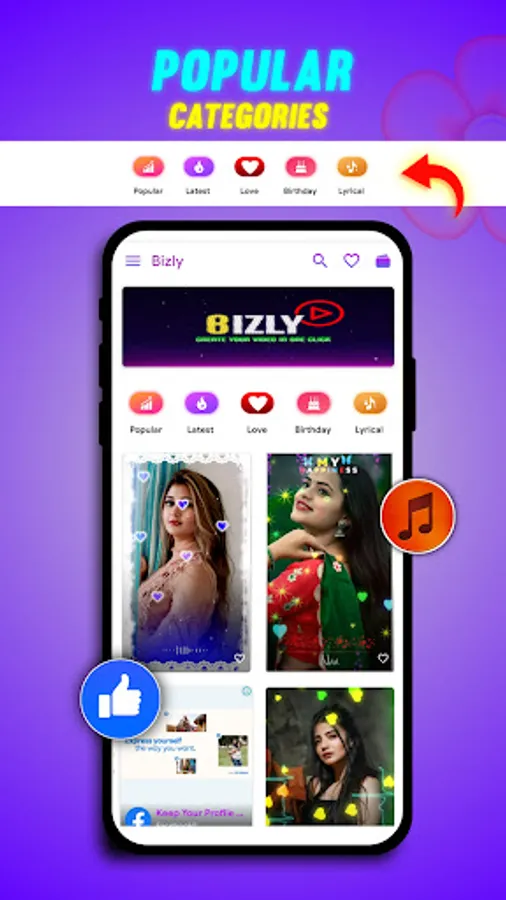 ☆ Make lyrical video status for your status with photos and latest trending songs. Best Lyrical Status Video ☆ Bizly photo video editing app with songs allow users change songs and crop music in the templates and replace it with the one you truly like. With Bizly, everyone can become a master of status edit.