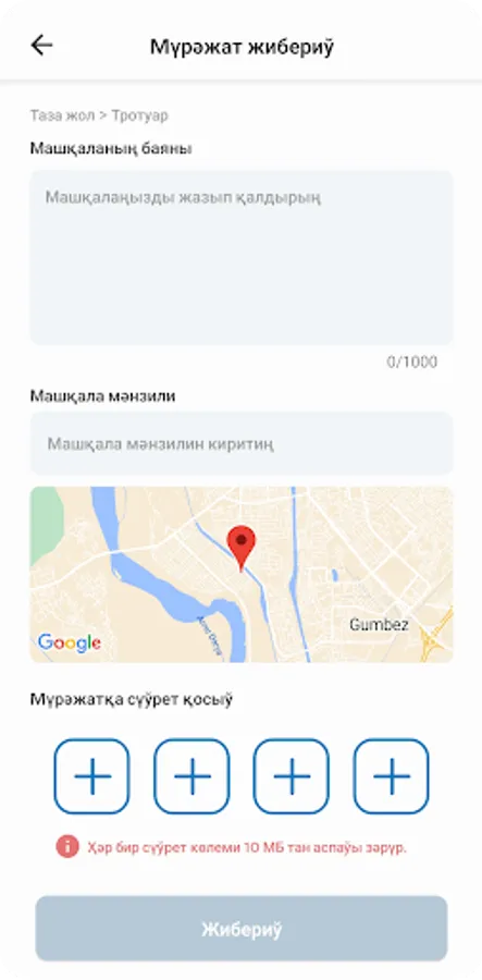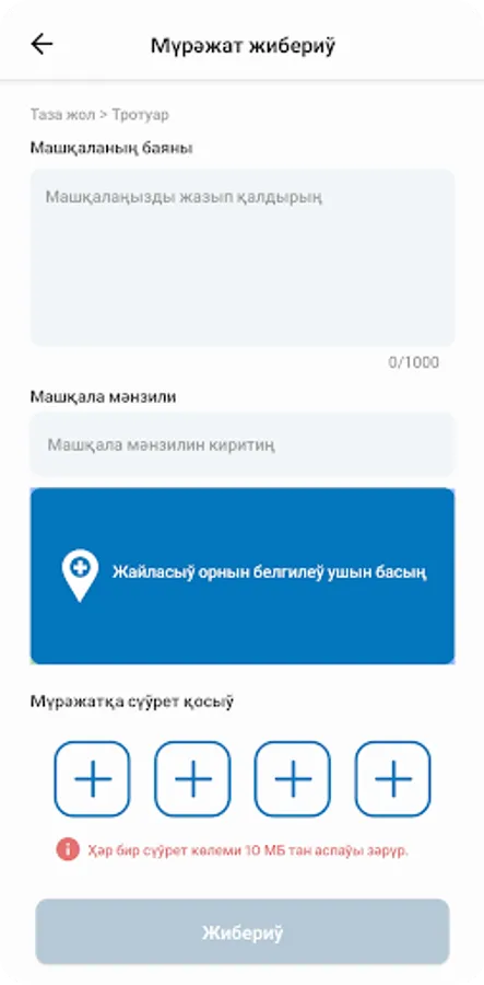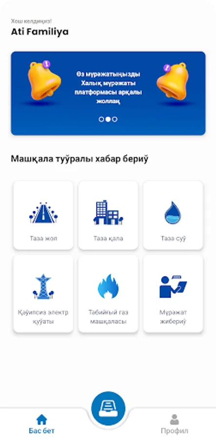 Өз мүрәжатыңызды Халық мүрәжаты платформасы арқалы жоллаң, аймағыңыздың жақсыланыўына улес қосың, машқала туўралы бизге хабар бериң.