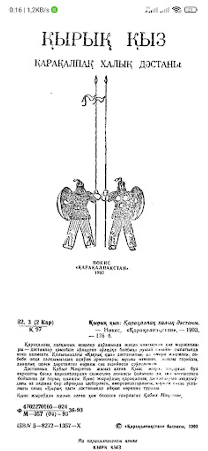 Ushbu ilova Qoraqalpoq xalq og'zaki ijodi namunalari haqida bo'lib ,ilovada quyidagi asarlar joy olgan: