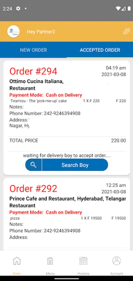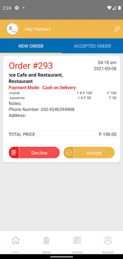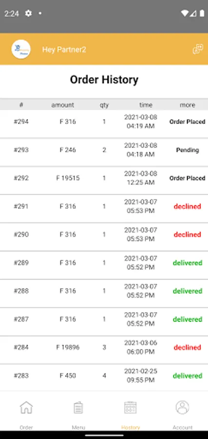 Notification of all orders placed are automatically sent to the respective partner/supplier who also approves or denies the order.