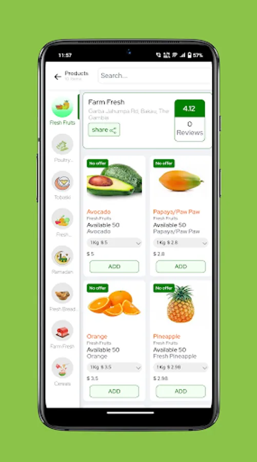The Farm Fresh App is designed to make the process of ordering groceries as well as many other upcoming items easy and enjoyable saving you time and money.