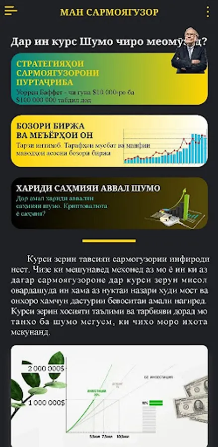 Имрӯзҳо ҳар як шахси дорои саводи молиявӣ аҳамияти идоракунии дурусти молиявӣ ва афзоиши доимии пасандозҳоро ҳуб дарк мекунад. Ба ғайр аз ин дар ҷаҳони муосир давлатеро тасаввур кардан ғайриимкон аст, ки иқтисодаш бидуни сармоягузорӣ вуҷуд дошта бошад. На ҳама мефаҳманд, ки дар рӯи замин комилан ҳамма ба сармоягузорӣ машғул аст. Дарвоқеъ таҳсилот ҳам як навъи сармоягузорӣ ба ҳисоб меравад, зеро ин сармоягузорӣ барои ояндаи шумост ва маҳс ҳамин ба шумо кумак мекунад барои дарёфти кори хуб ва маъоши баланд.