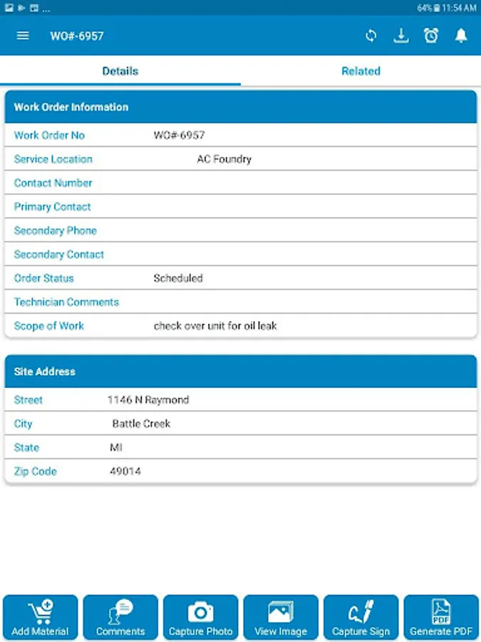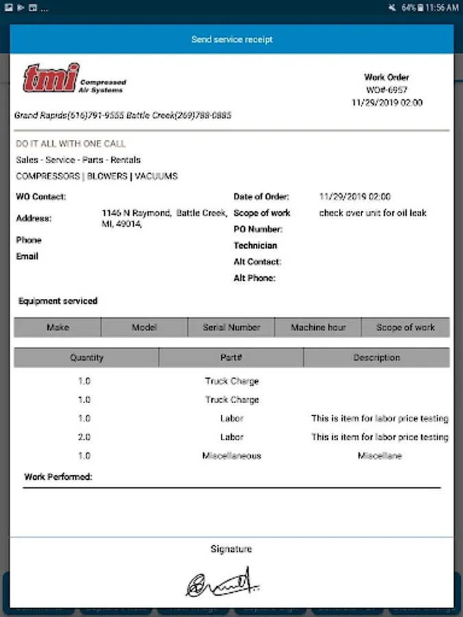 TMI Field Service Screenshots