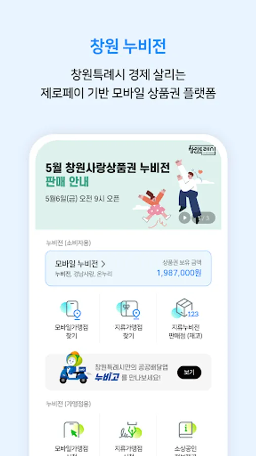 Changwon Nuvision is an app that can be used to purchase and recharge gift certificates that can be used at Zero Pay affiliated stores in Changwon City, and can be used at merchants such as traditional markets and convenience stores. You can easily and conveniently pay.