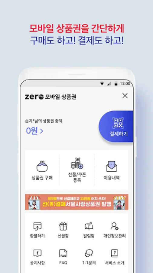 Gangwon Gift Certificate is a card gift certificate app that can be used to purchase and recharge gift certificates that can be used at Zero Pay affiliated stores in Gangwon, and can be used at merchants such as traditional markets and convenience stores. It can be used in a convenient way of charging.