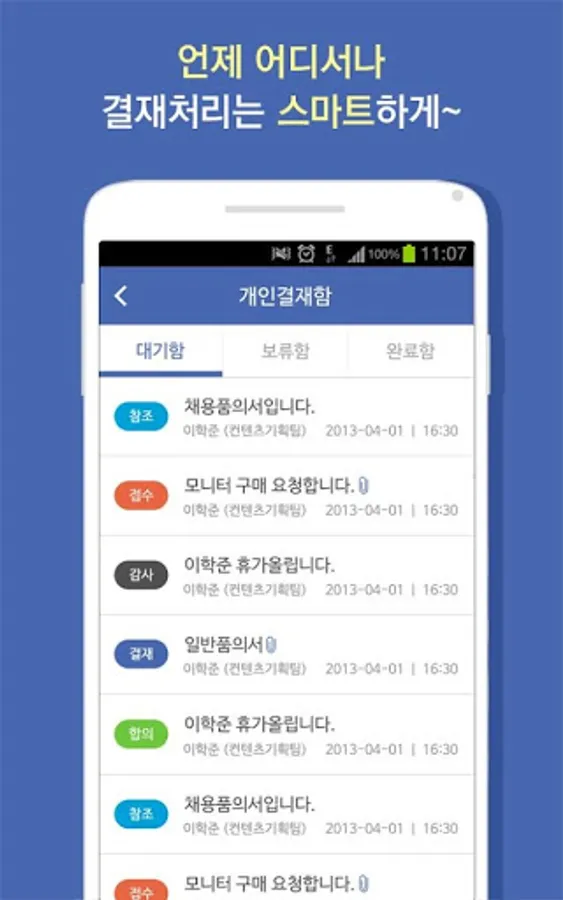 The payment box app allows you to quickly and easily process all approval documents and check the payment history in a non-office space anytime, anywhere.