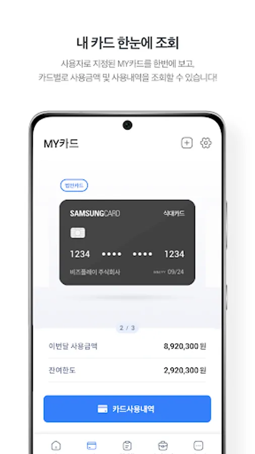 • Samsung Card Bizplay app is an app provided to security users who use the Samsung Card channel bizplay expense management service.