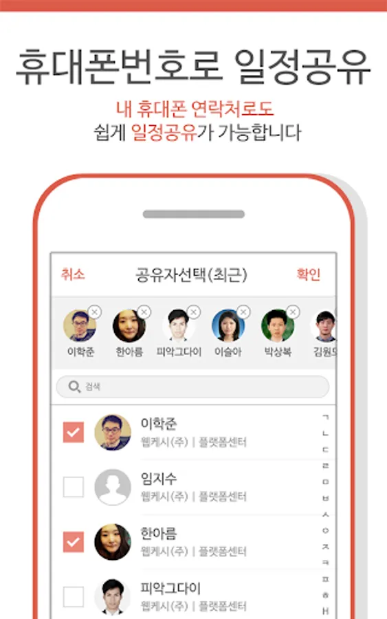1. 휴대폰번호만으로도 일정을 쉽게 공유합니다.