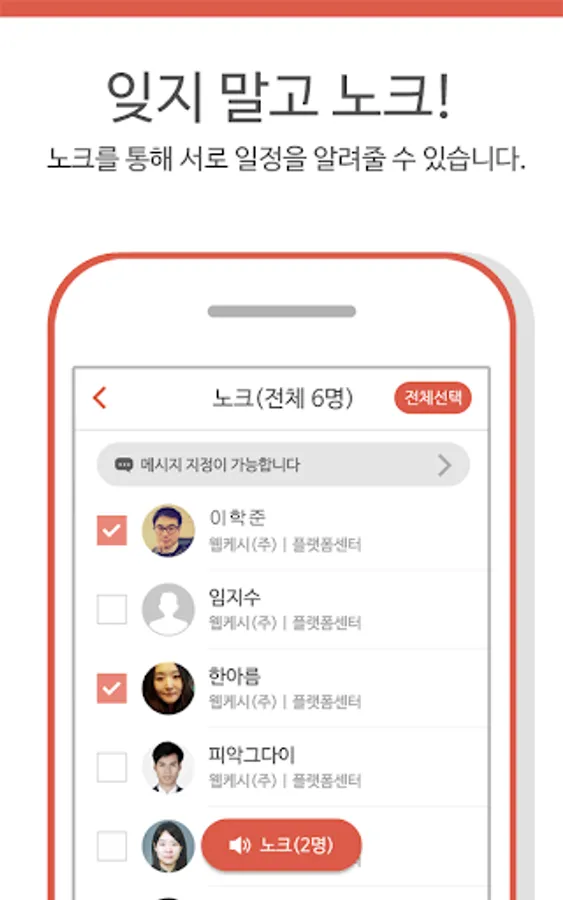 2. 노크 기능을 이용하여 원터치로 공유된 사람들에게 일정을 알림해주세요.