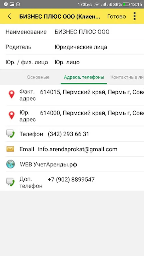 Mobile client for the software product Accounting for rent and rental (project AccountingArends.rf) Functionality: