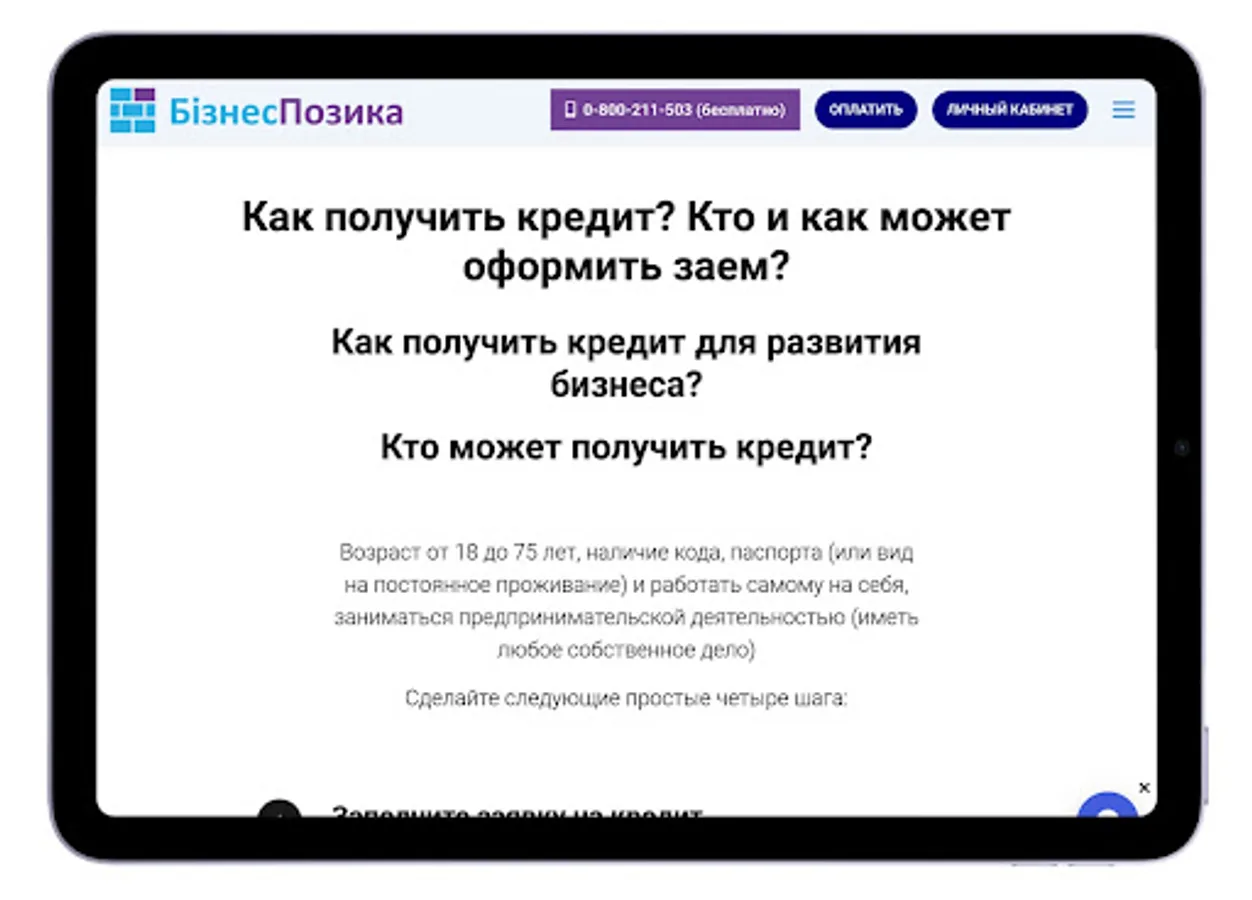 Business Loan is a modern and safe lending service that allows you to get money online to your card 24/7, on weekdays, weekends and holidays.
