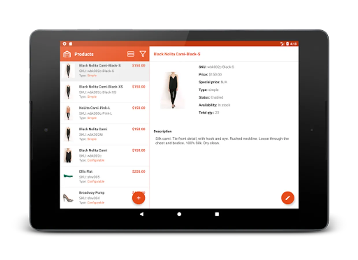 It is a user-friendly mobile app for Magento store admin which gives you a detailed view of order list, details of products listed and other information. You will also find a customized dashboard having visual and textual description of total order.