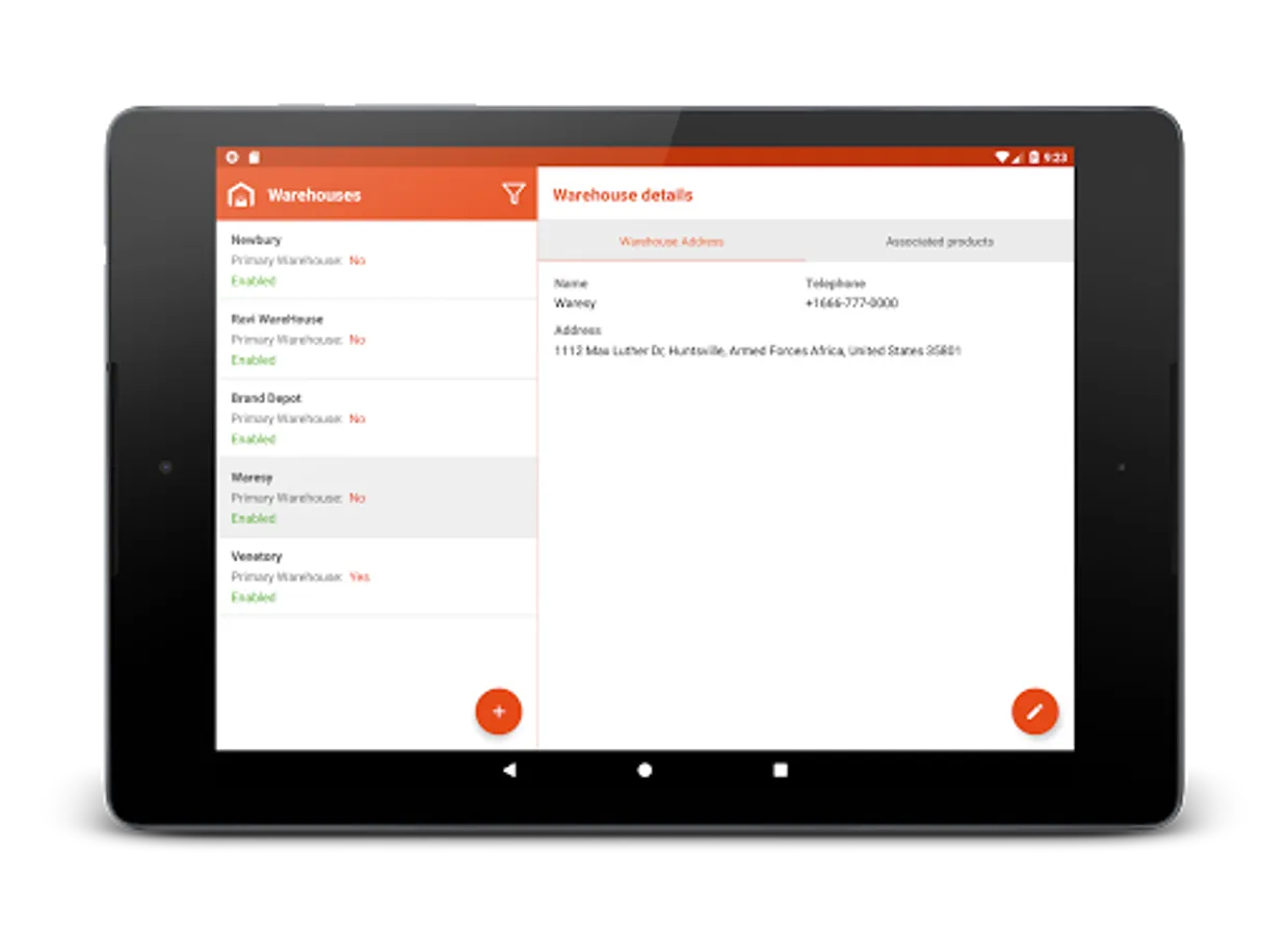 - Provides you with the list of warehouses and enables you to search, create, edit and filter warehouses by name