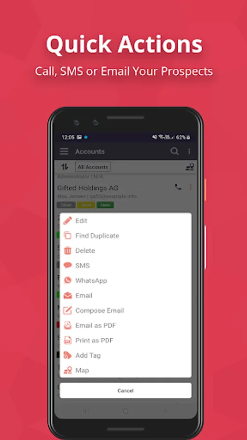 • Create leads and contacts from phonebook contacts