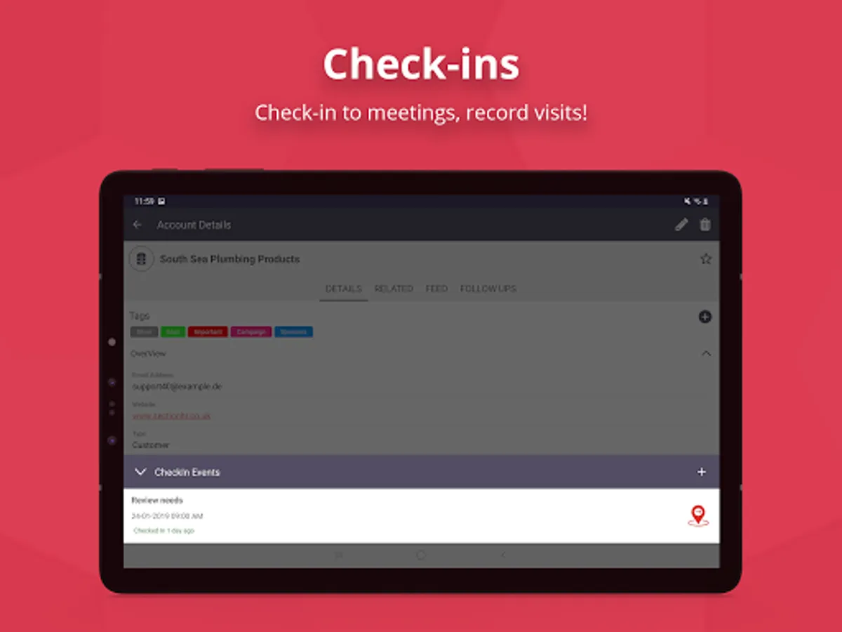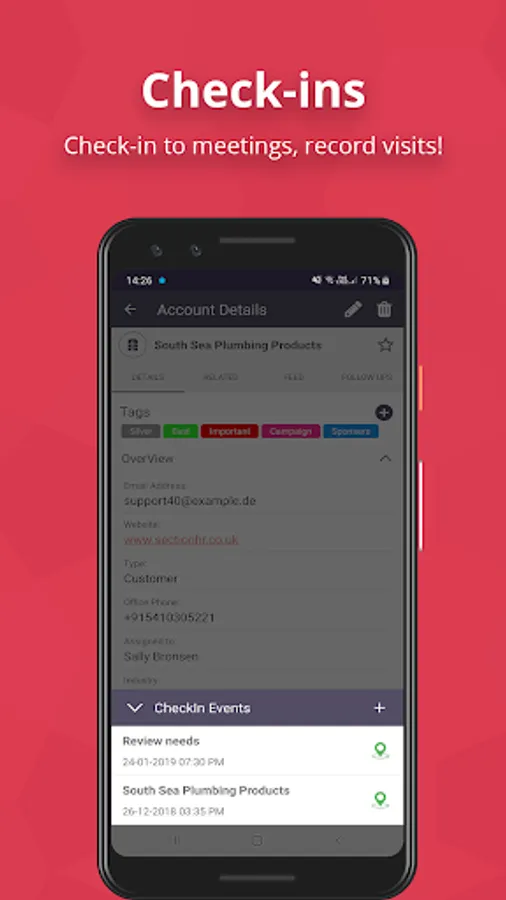 • Check-in, Check Out of meetings, tasks, calls, and appointments