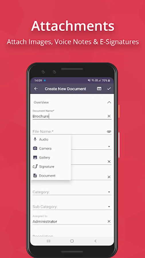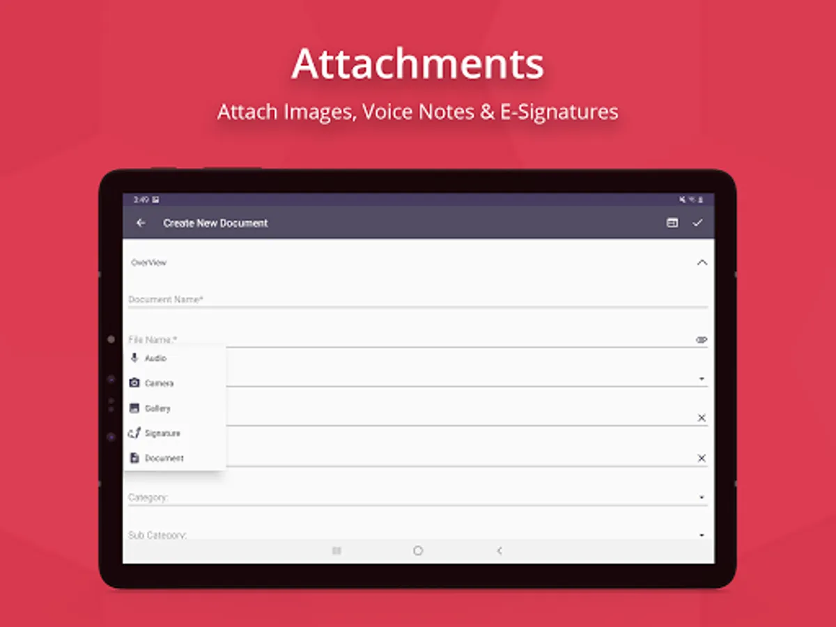 • Add multiple attachments like voice notes, docs, signature, etc. in CRM records