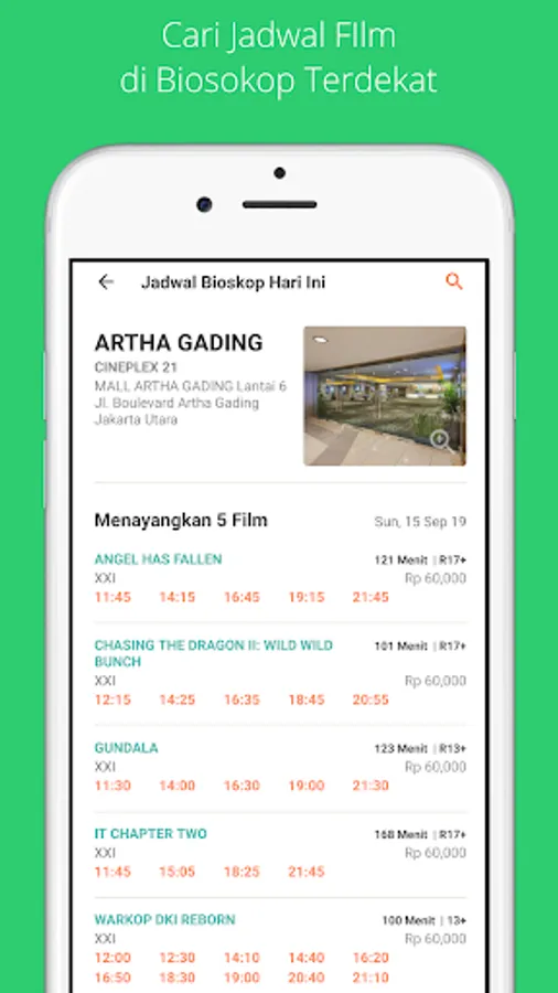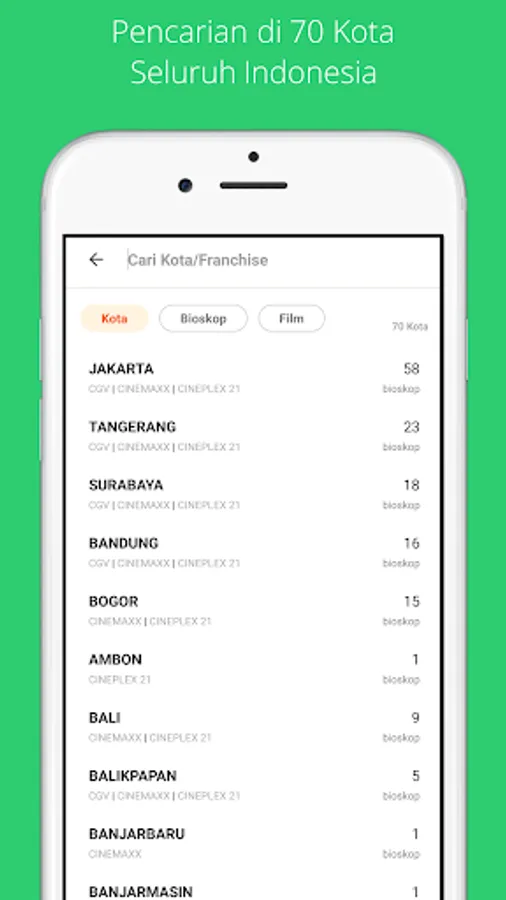 Covers all of Indonesia in 70 cities and 450 screens throughout Indonesia