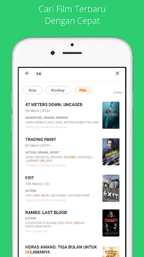 It has a fast movie, cinema and city search feature, with data that is always updated