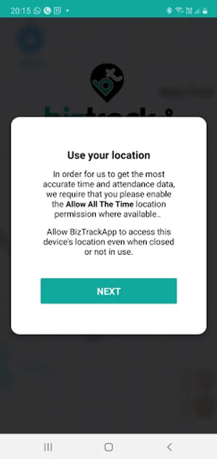 Each store will be allocated a GPS coordinate and then a radius (defined by your employer) will be set as a GEO fence around the store. We will use your device's location to enable visits when you are near (inside the geofence) the store. Therefore, for the clock in process (Start Visit), we use front end location services (while the app is open). We know however that the app is not something you will continually use (keep open the entire day), we need to use background location service (meaning your device's location while you are busy with other apps or phone is locked) to remind you to clock out should you leave the store (exit the geofence) to take a break or ending the day without signing out. This will ensure the most accurate time and attendance.