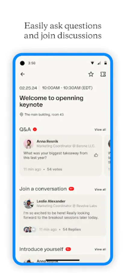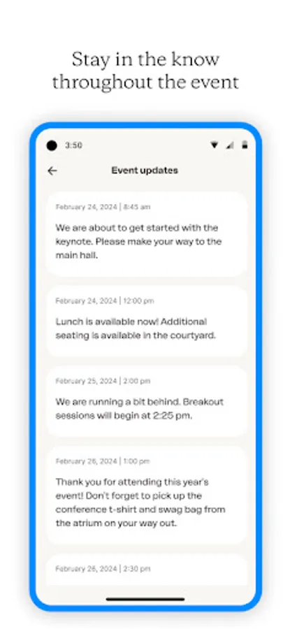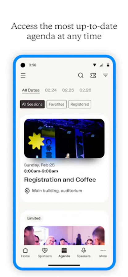 Stay up to date with in-app notifications. Get real-time updates about sessions, speakers and special offers.