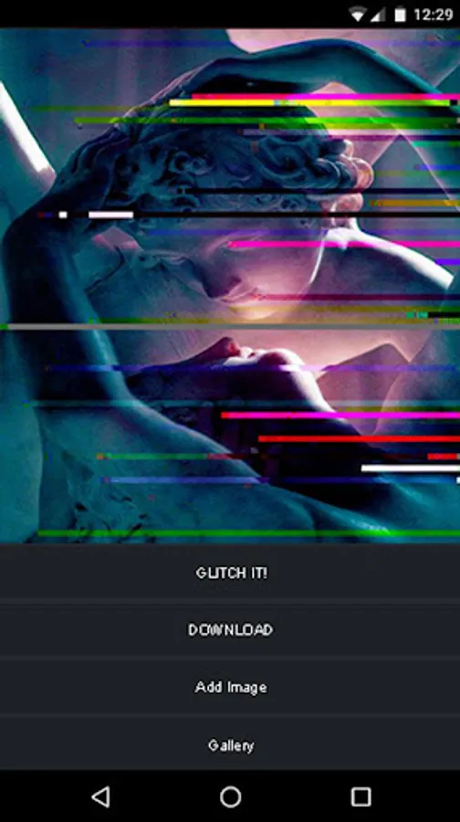 you can take a picture using your camera and glitch it or upload photos from your gallery and edit them with the glitch effect and the 3d effect and you can also save your artwork.