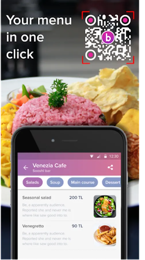 - Create for free your digital menu/catalogue, accessible through simple QR scan!