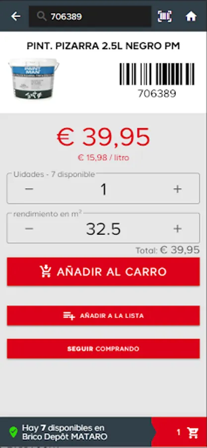 Download the Brico Depôt app, sign up and select your nearest store. When you get to the store, scan the barcode of each product you want to buy. Complete your purchase and pay using the app.