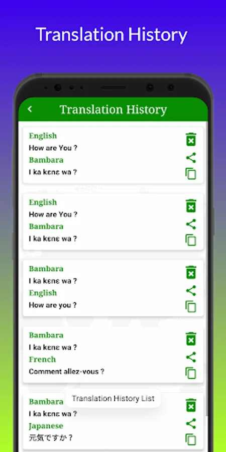 * Translation History List.