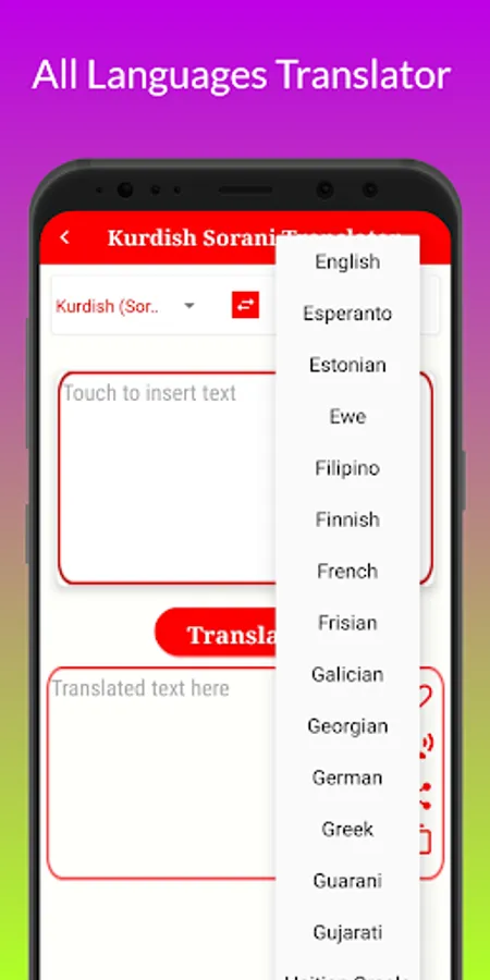 * Kurdish Sorani to All Language Translate.