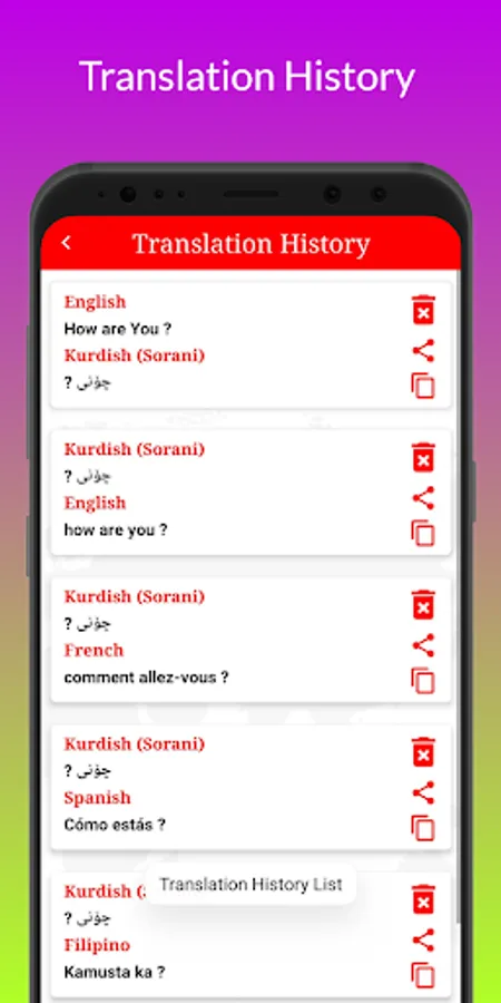 * Translation History List.